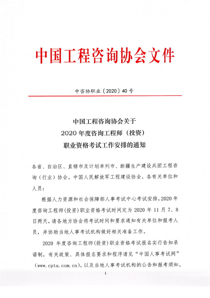 中国工程咨询协会ak网2020年度咨询工程师(投资)职业资格考试工作安排的通知